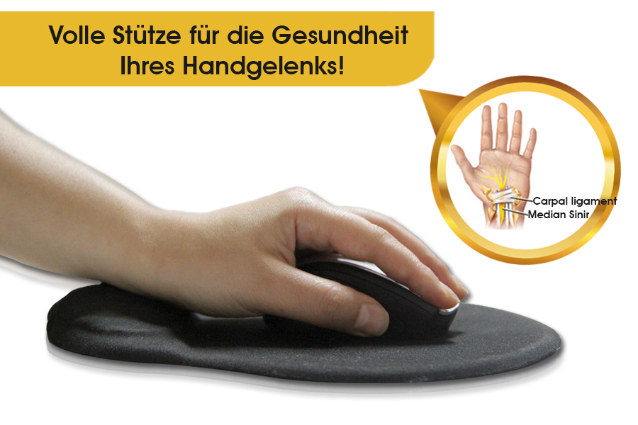 - Dank seiner ergonomischen Struktur verhindert es Beschwerden, die bei längerem Gebrauch der Maus an Ihrem Handgelenk auftreten können.