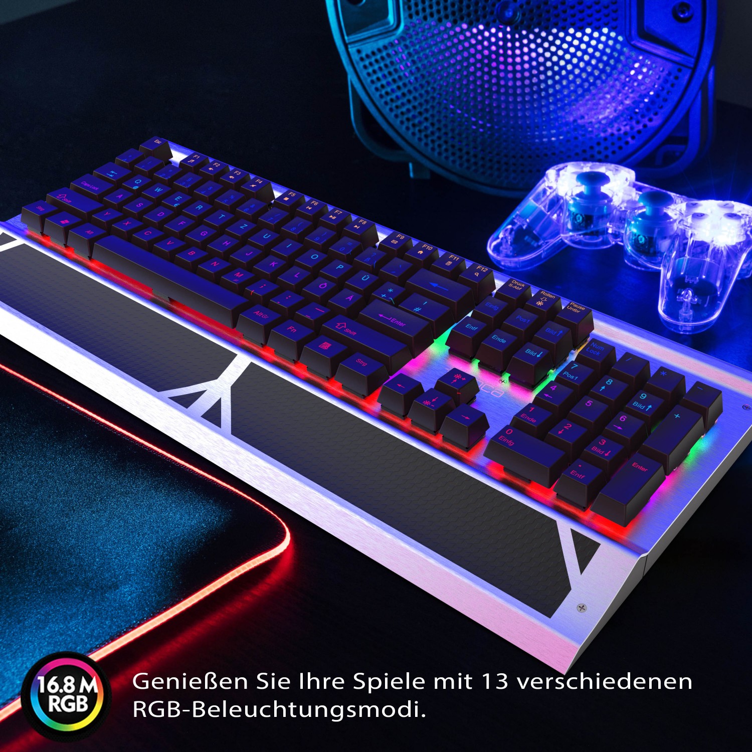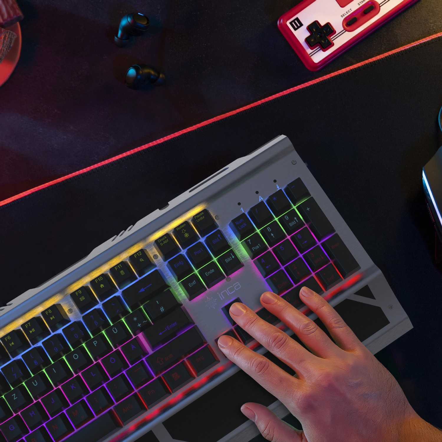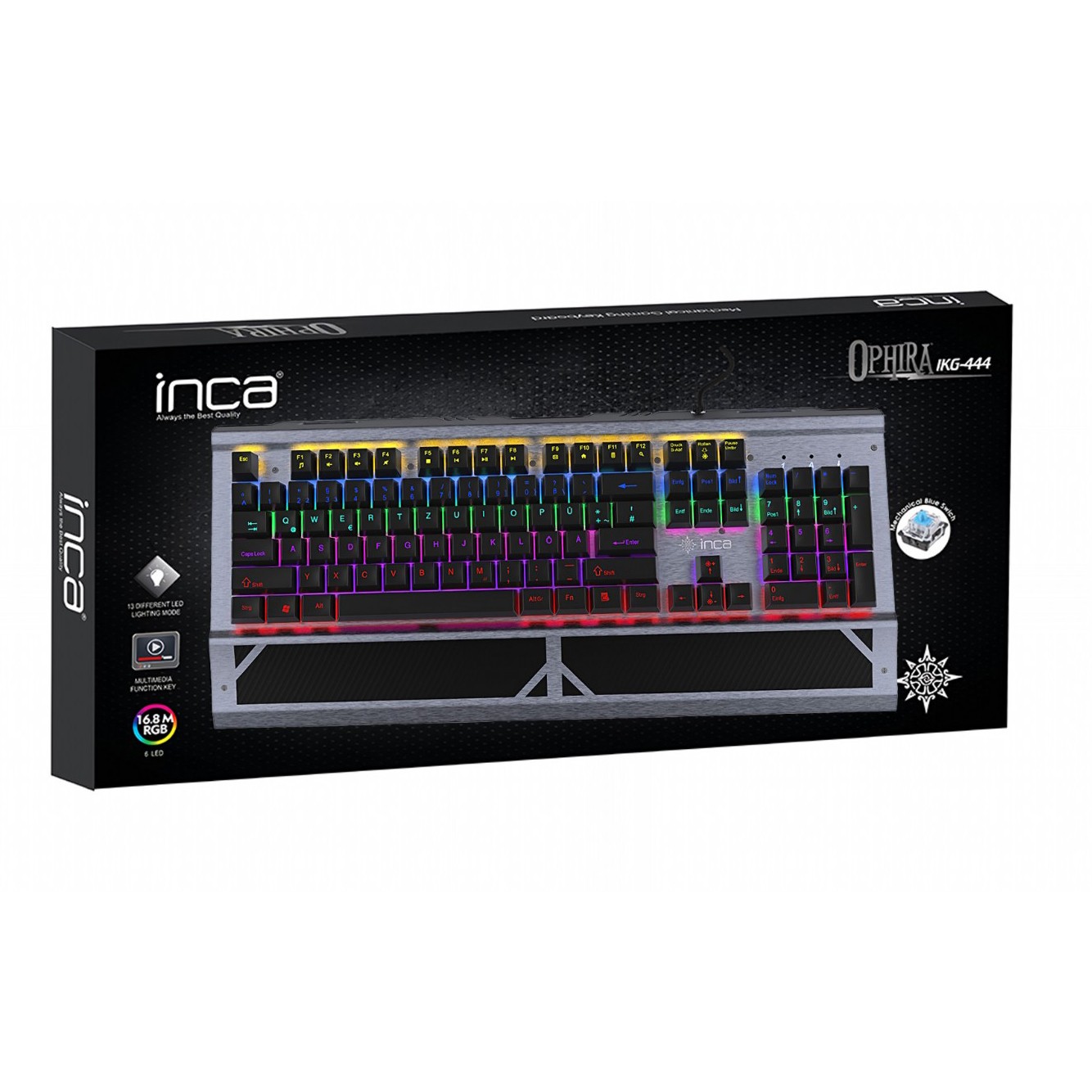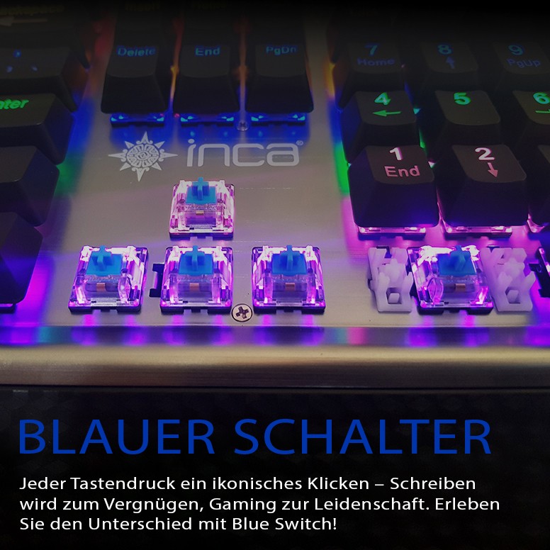 INCA Gaming Tastatur (IKG-444) Mechanisch RGB - dt. Layout retail - Ophira RGB,Blue Switches,104 Tasten
